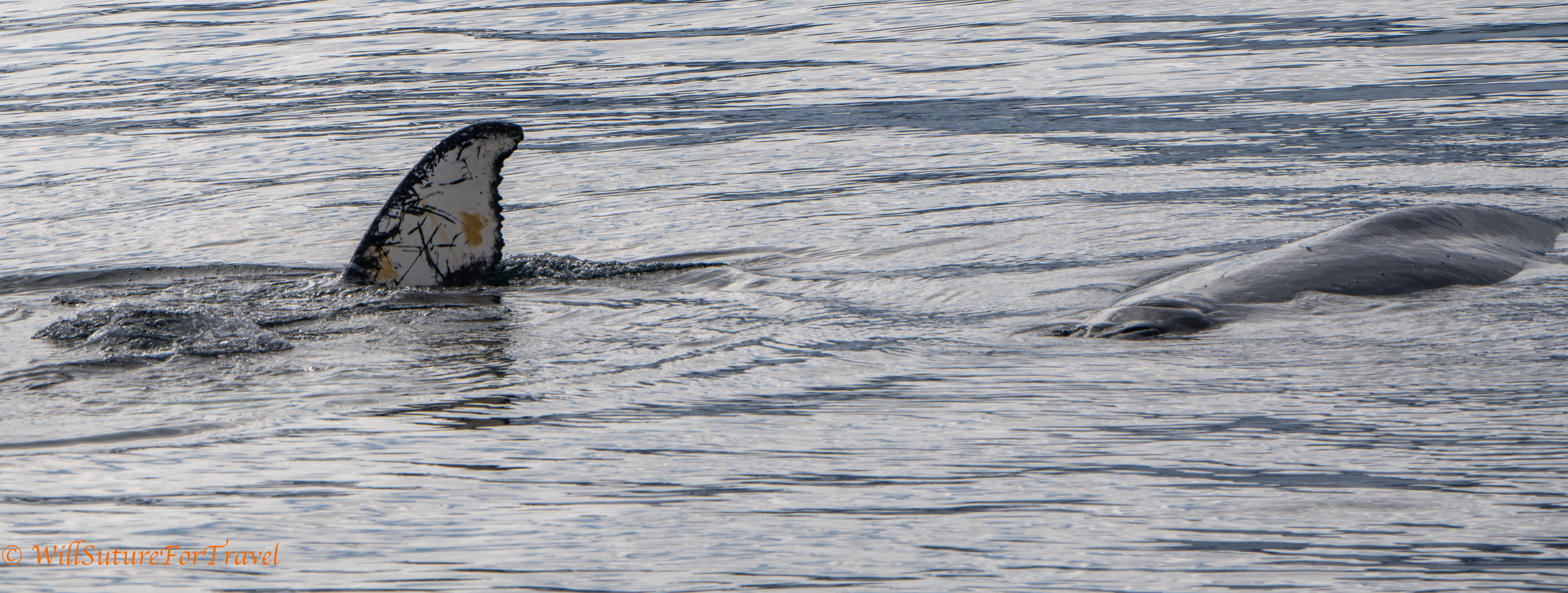 The calf is swimming on its side near mom. You can see mom’s blowhole.