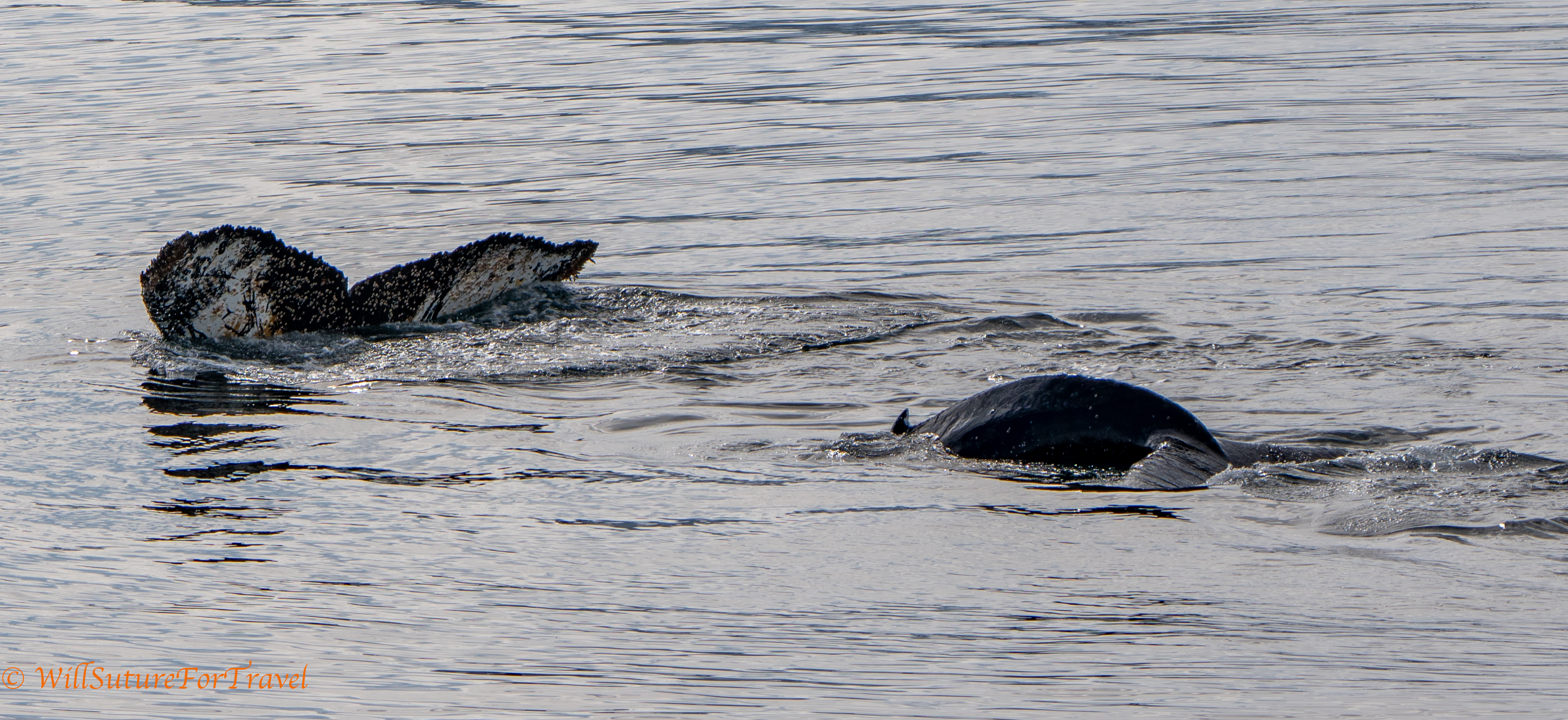 We had a great time this morning watching a humpback mother-calf pair interacting for about an hour. When we came out to the bow they were breaching but they soon rested, although the calf became playful again.