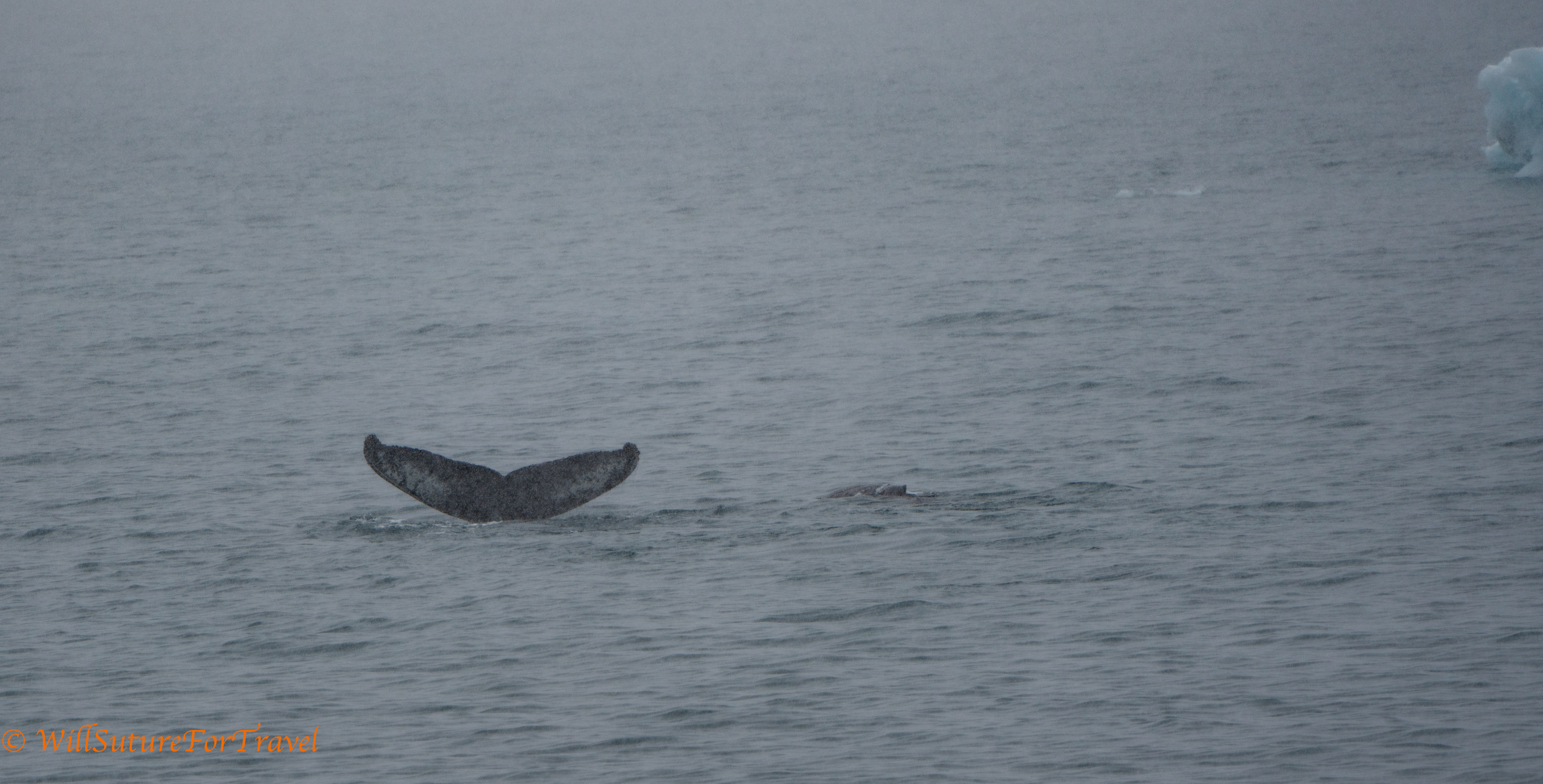 This mom and calf were a long ways off and partially obscured by snow, but did give us a whale fix for the day.