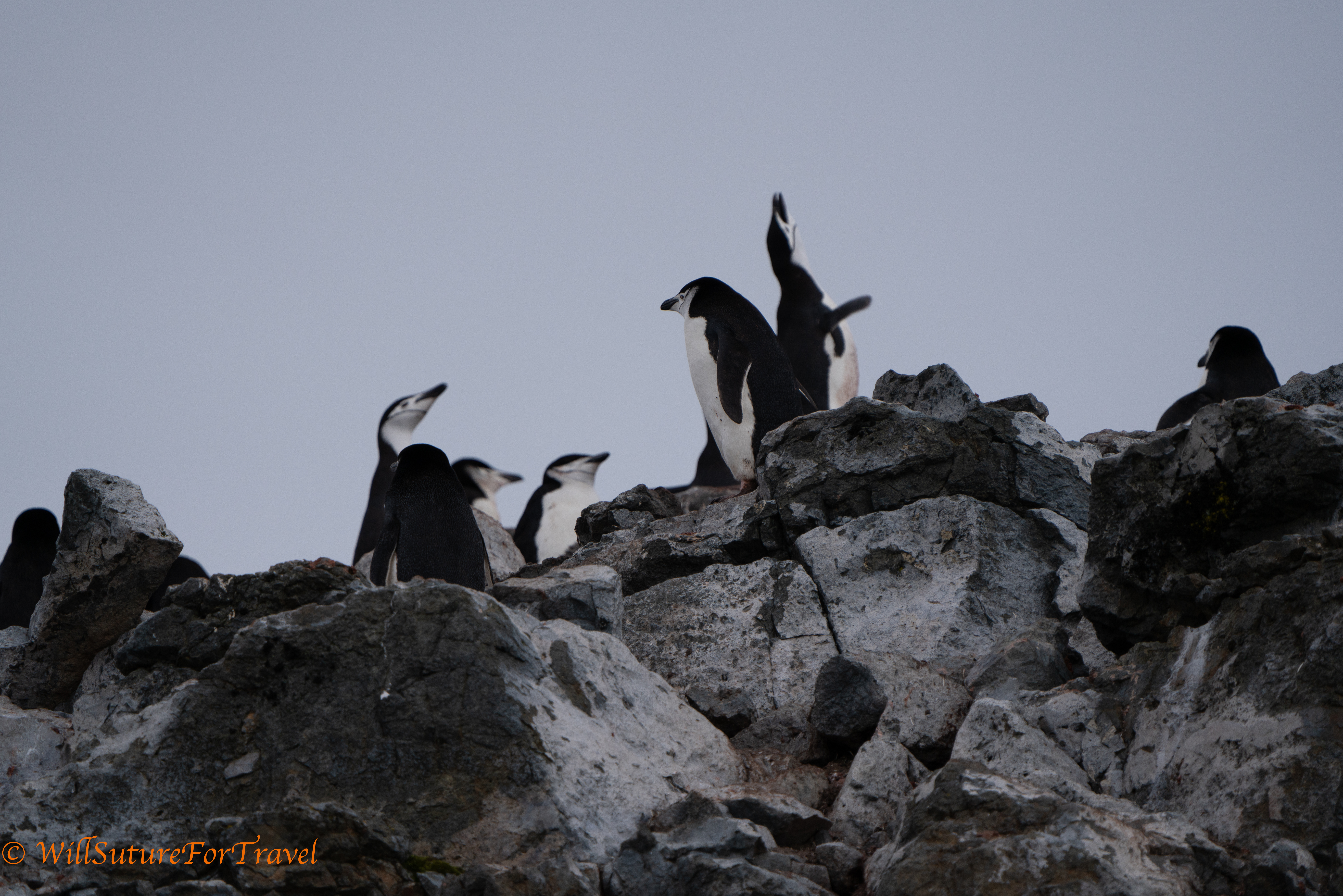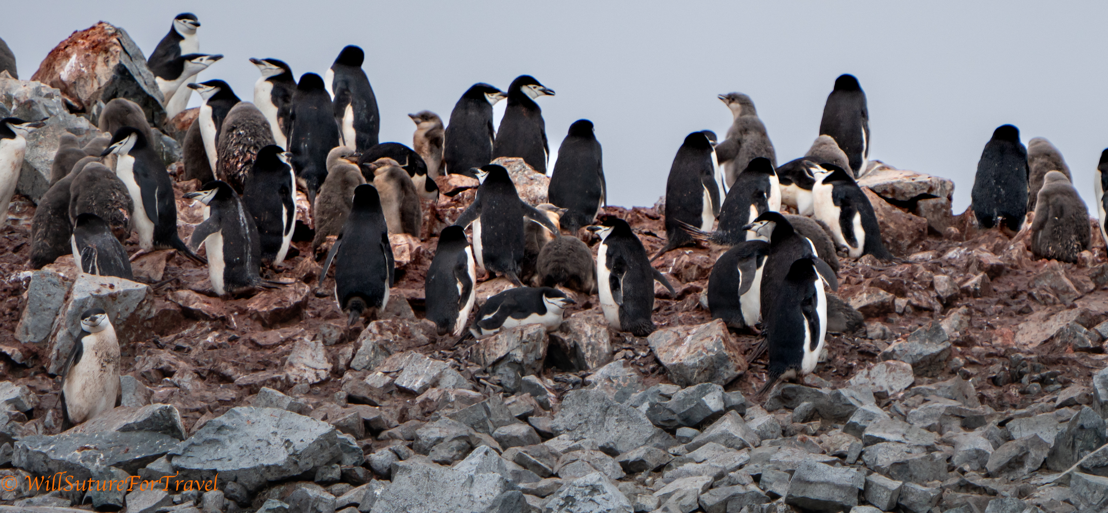 Multiple birds nest on Half Moon Island, the most numerous being Chinstrap penguins.
