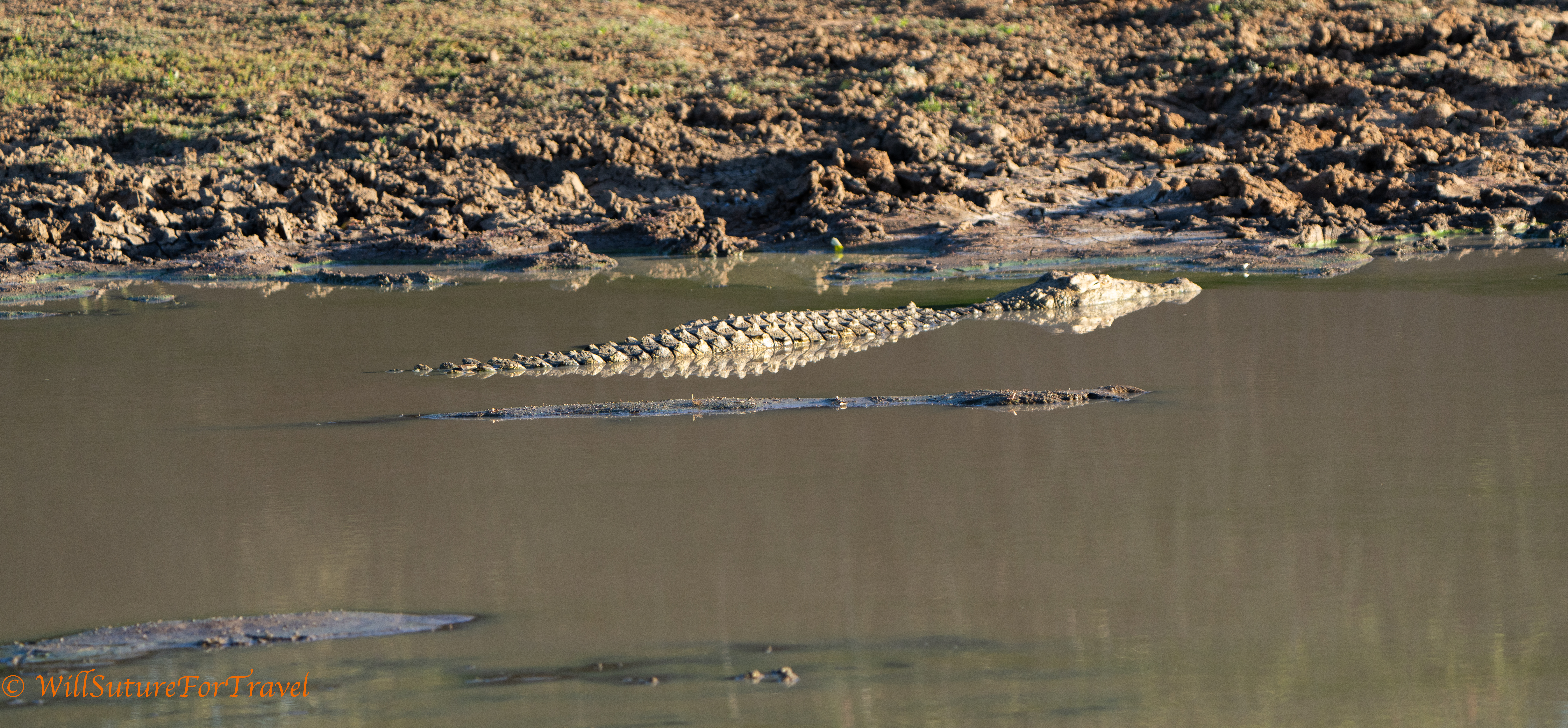 A Nile crocodile sunning itself in the water. They average 6-9 feet long. No idea how long this one was as we didn’t get close.