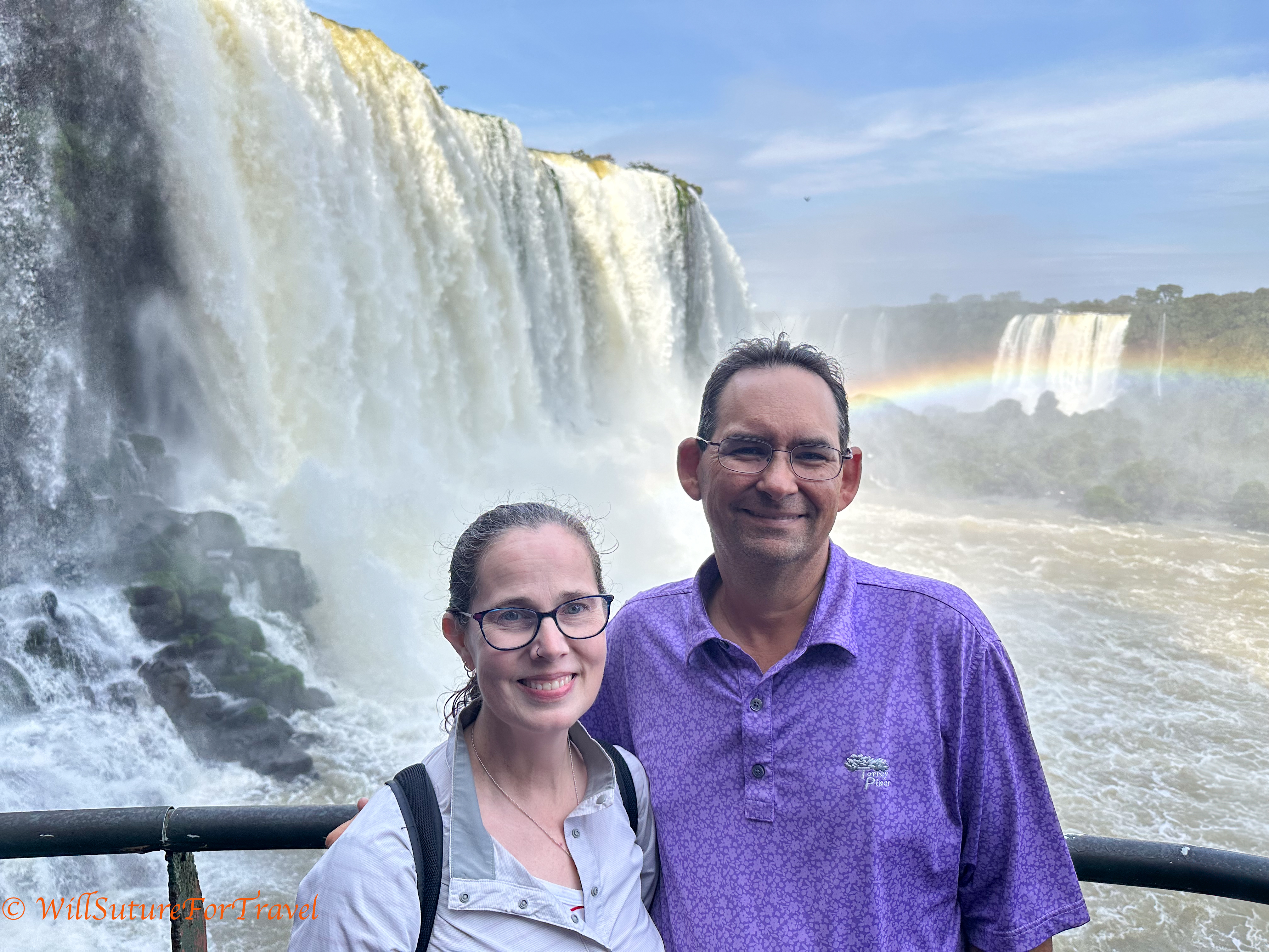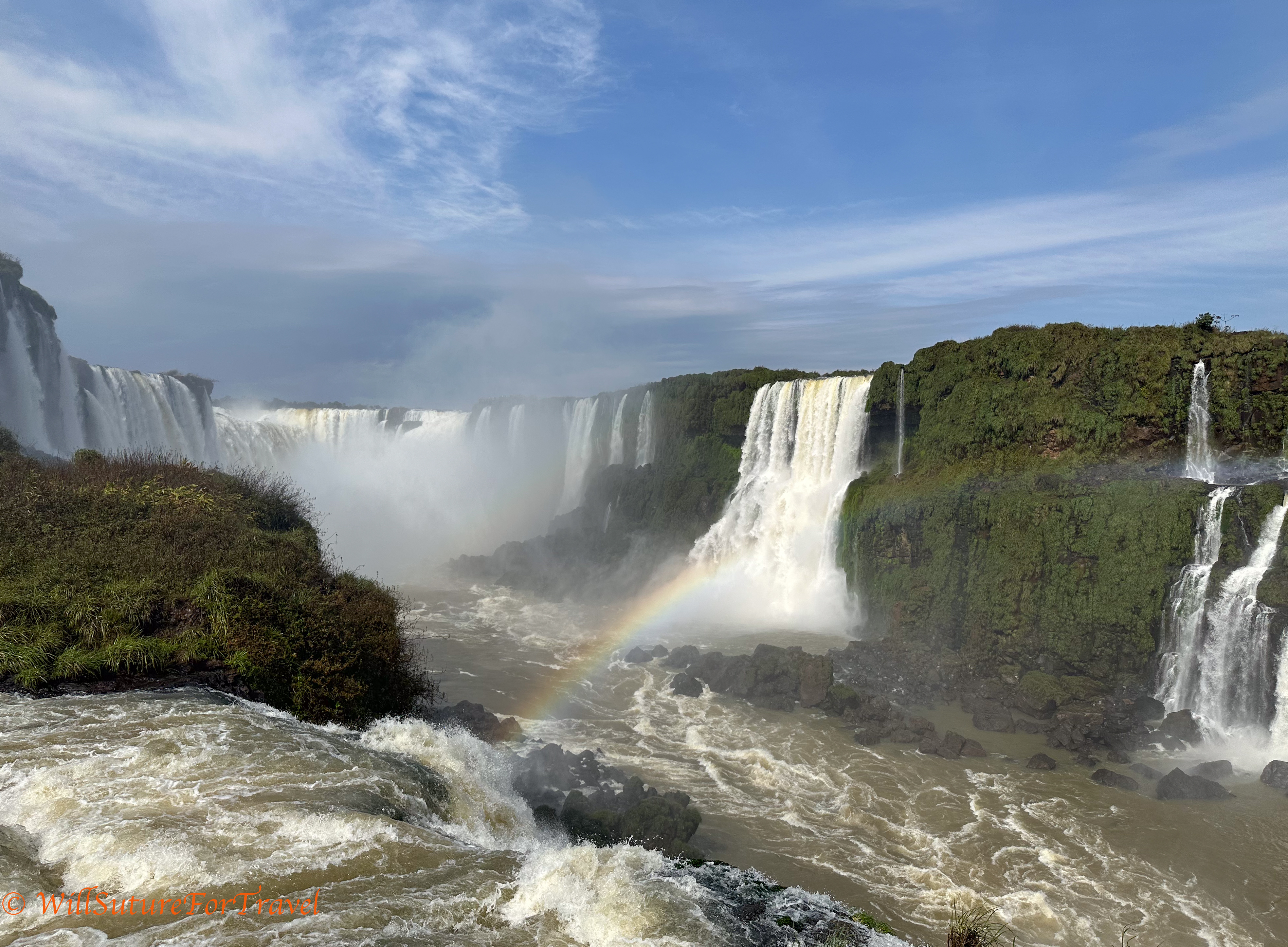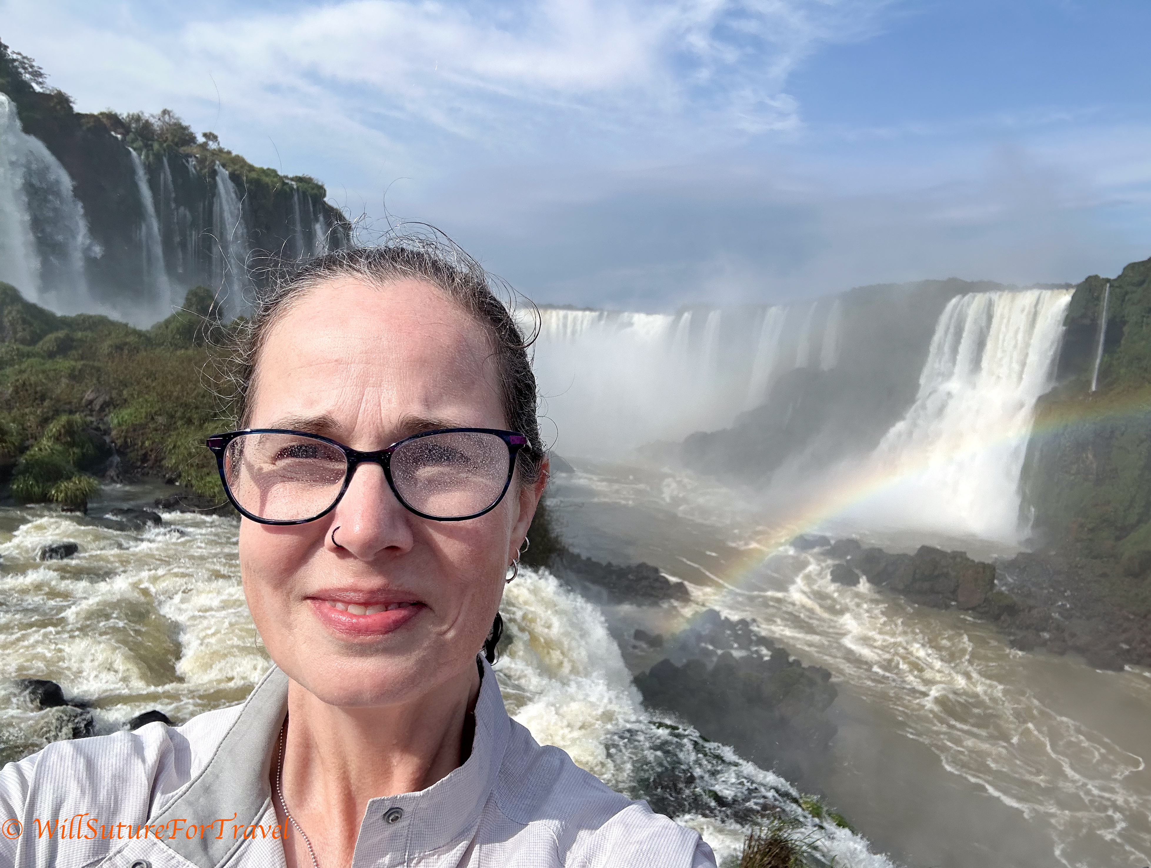 I walked out on the boardwalk to get a view of the Devil’s Throat, the largest of the falls here with the most water flow. You can see it behind me. There was mist everywhere with multiple rainbows.