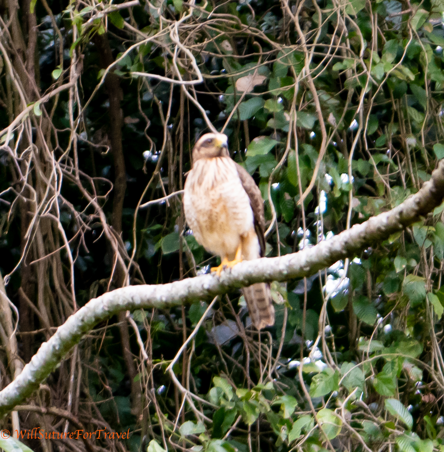 A roadside hawk (that is the name of the bird, not the location) that we saw perch hunting. Not the best picture.