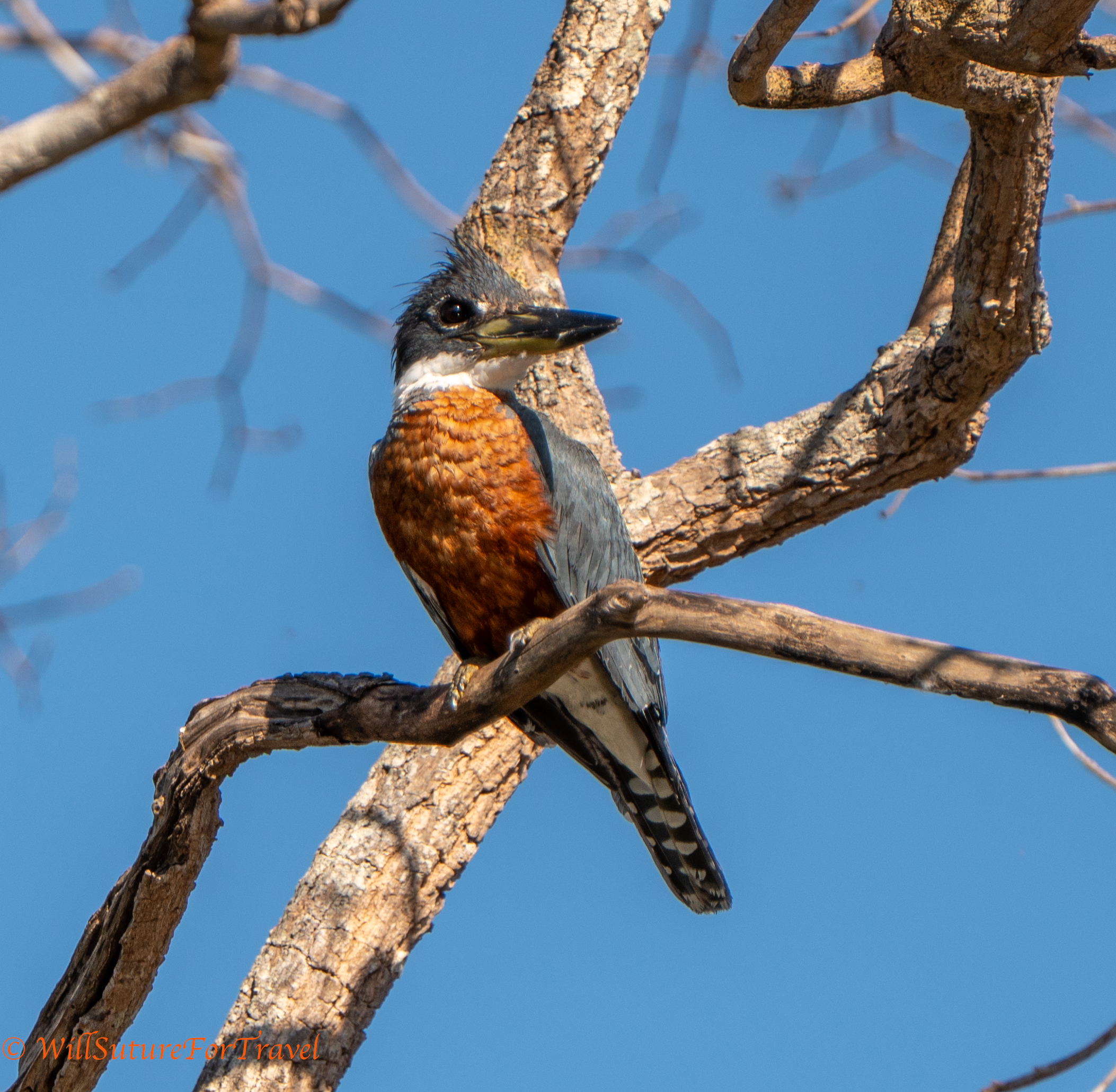 Ringed kingfisher. Their range covers South Texas, Central, and South America, but with regional subspecies.