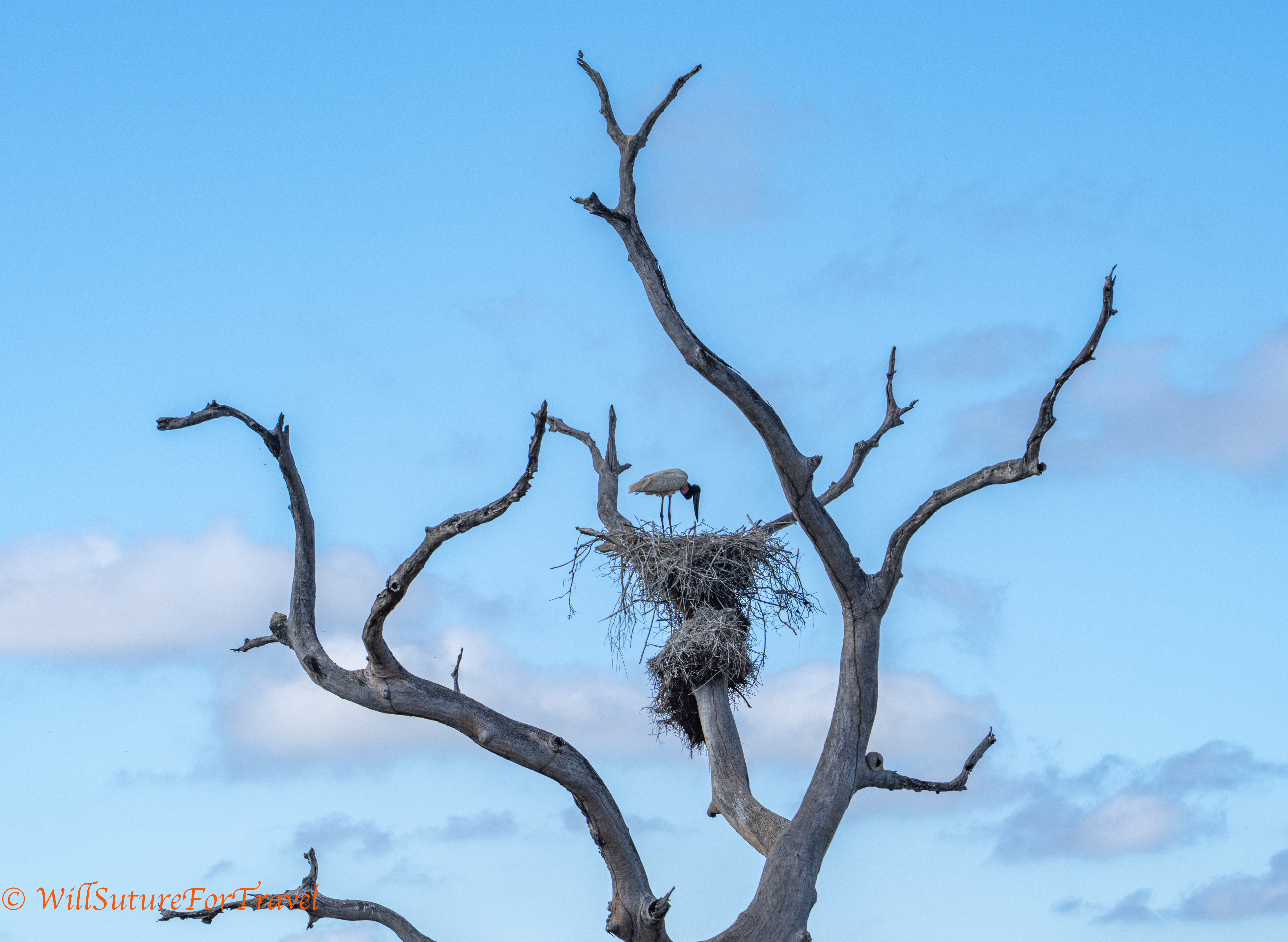 Jabiru: a large stork 47-55 in tall with 7.5-9 ft wingspan. That nest is huge.