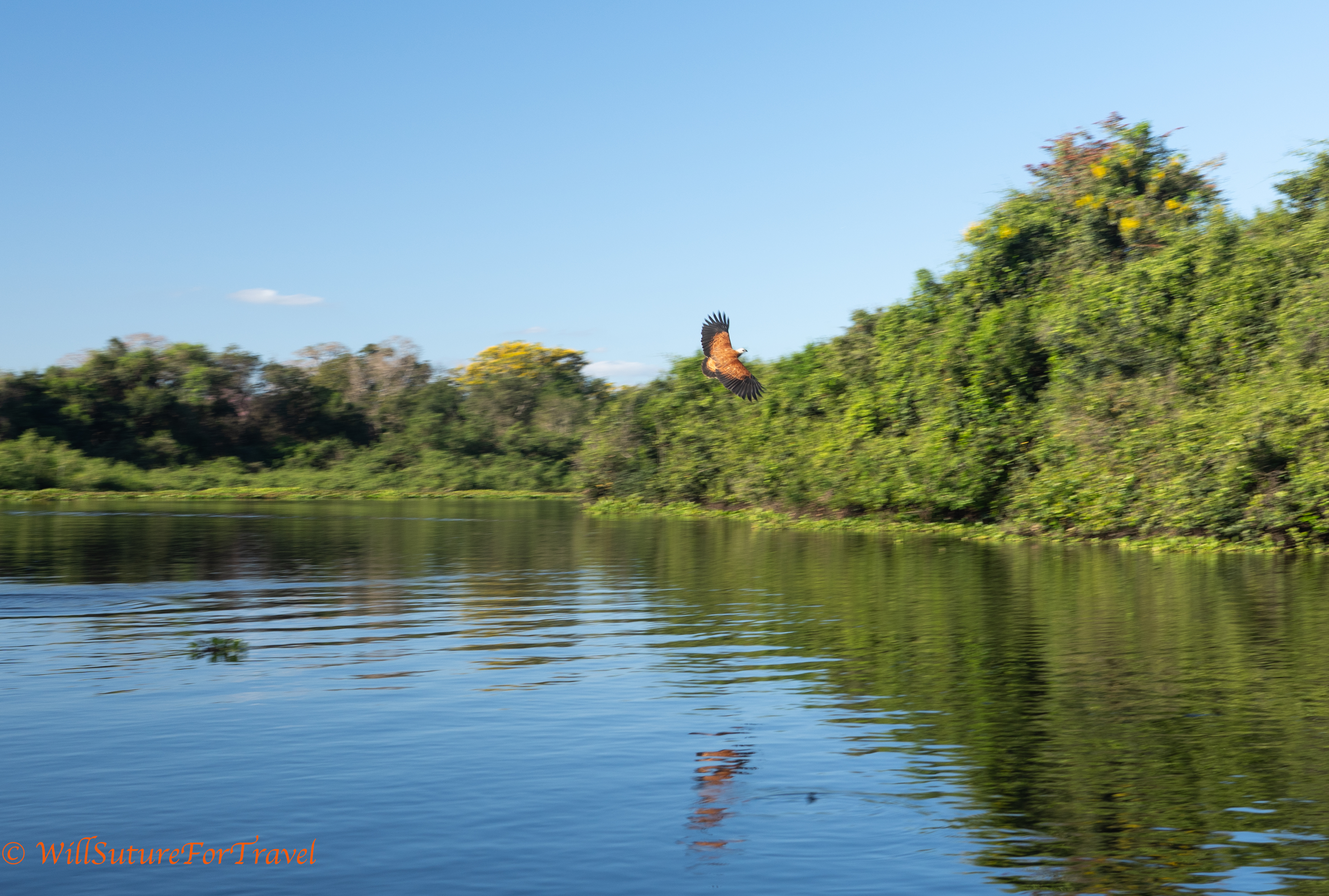 The Pantanal is the largest tropical wetlands and grasslands in the world. Most of it is located in Brazil, with some extending into Bolivia and Paraguay. During the rainy season, most of this area is submerged under water. We are here near the end of the dry season. The Pantanal ecosystem is very diverse with more than 225 species of mammals, 450 species of birds, 250 species of fish, 130 species of reptiles and amphibians, and 9,000 subspecies of invertebrates.