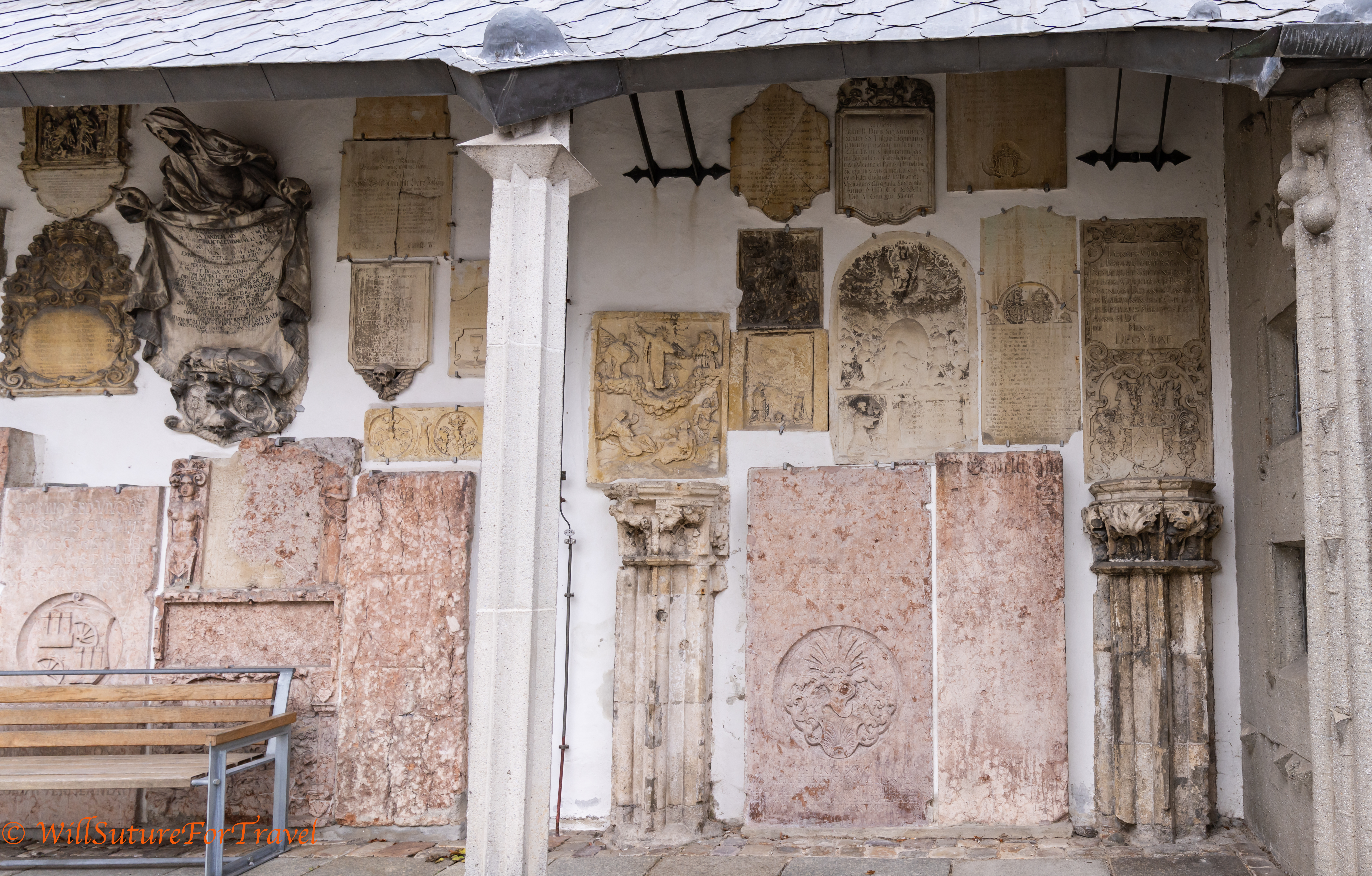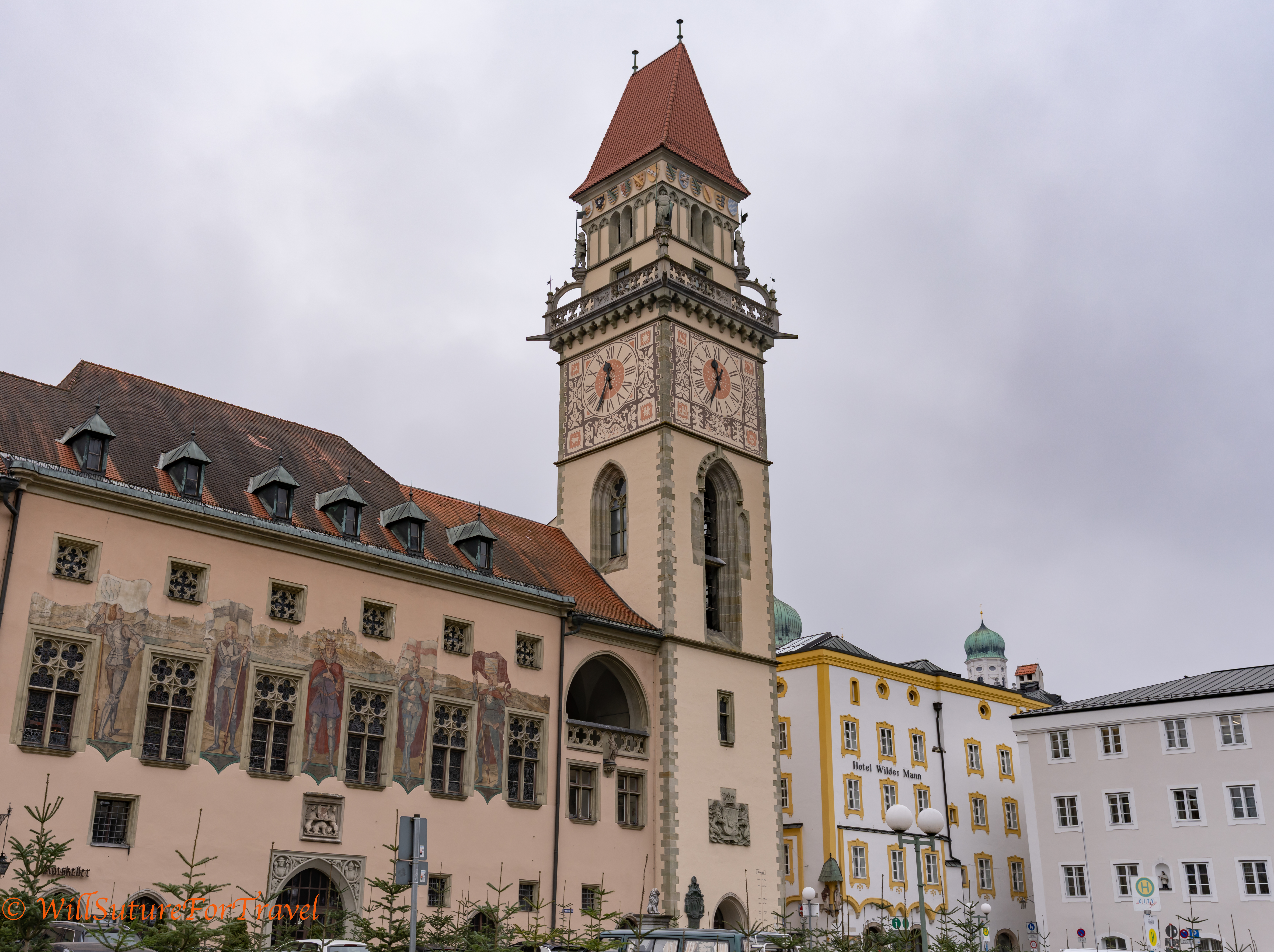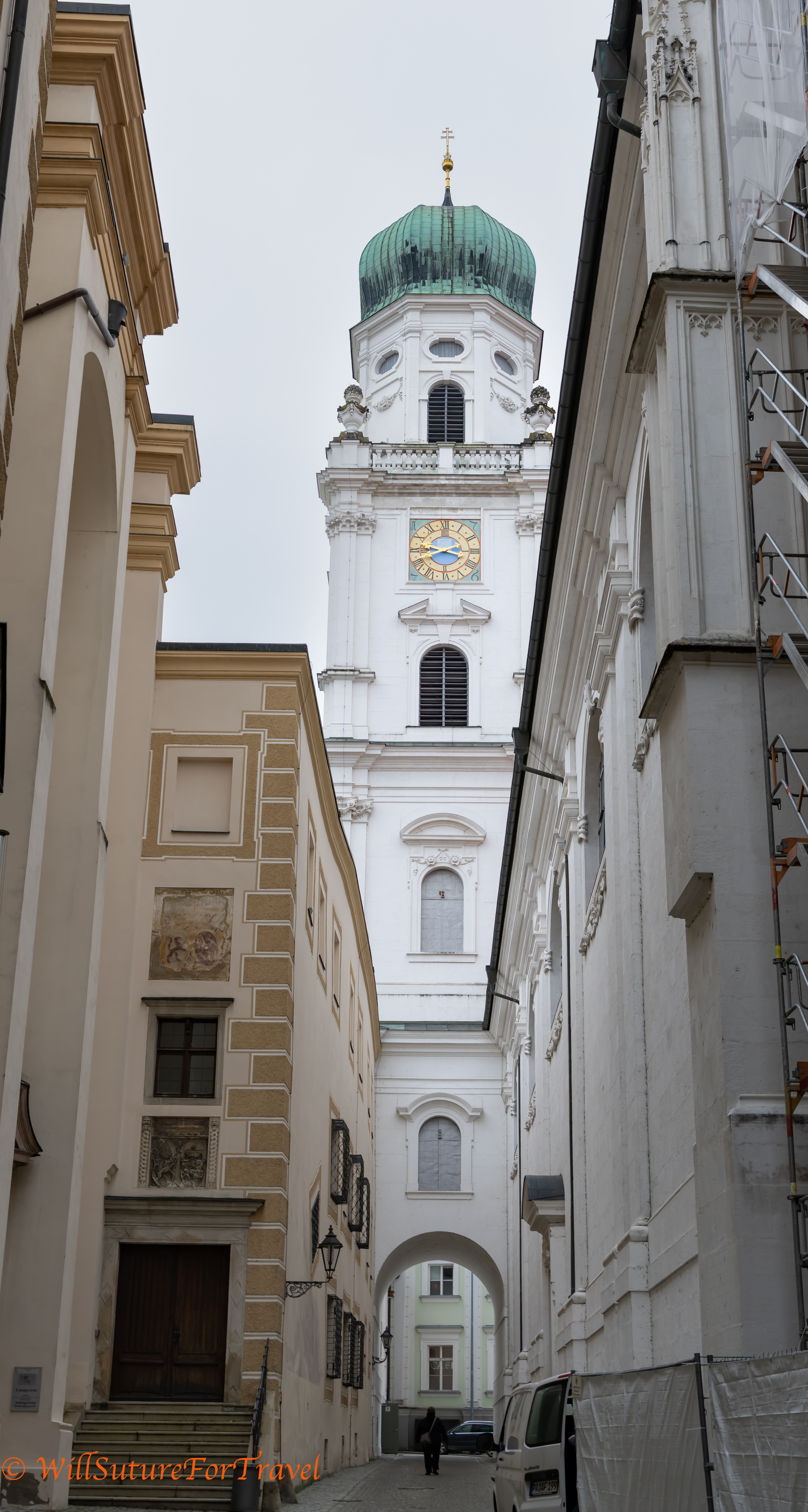 The biggest landmark here is the Oberhaus Fortress up on the hill on the Danube. This was founded in the 13th century and expanded until 1800. It served for most of its history as the castle/fortress and residence of the Prince-Bishop of Passau. The date painted on the wall is 1499, the odd looking number is a medieval 4, or half of an 8.