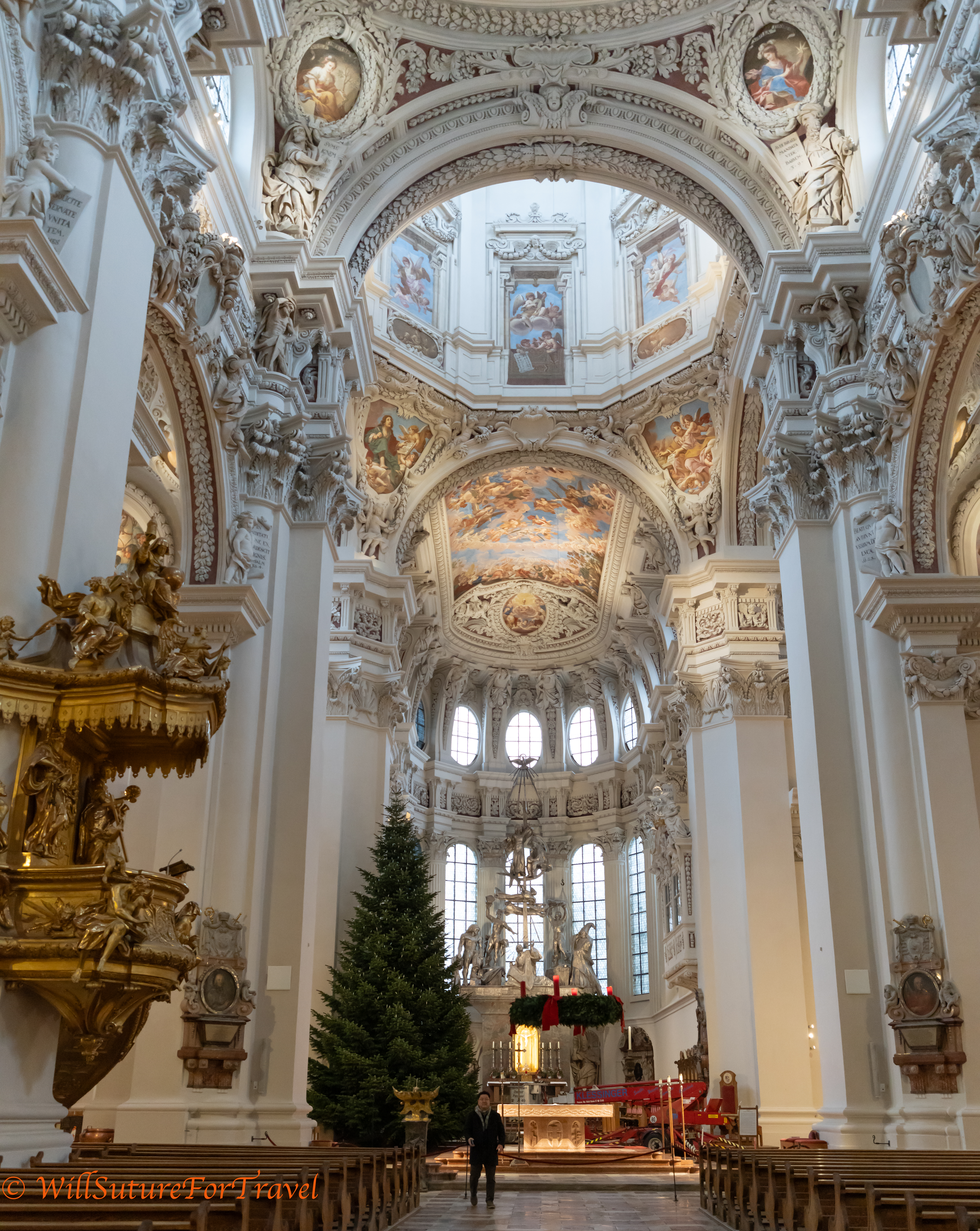 There are 5 organs in this cathedral. One of these is a distant organ that transmits its sound through the ceiling. All of the organs can be played together from the main console, although 2 of them were being renovated at the time of our visit.